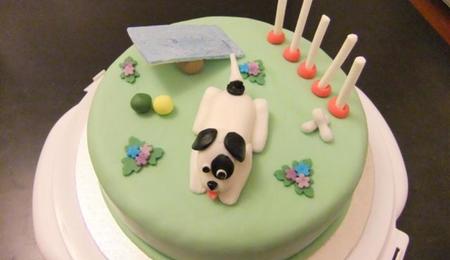 Choc cake with choc bc, choc icing and white choc modelled logo - mmm!