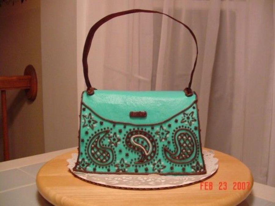 This is DH Devil's Food with the Extender recipe added plus 1/4 cup of Dutch Processed Cocoa. All buttercream frosting with a ribbon bow. I was trying to make it look reminicient of a Vera Bradley purse for a friend's birthday. I think that it just turned out way too busy. I'm worried that she won't like it. But, it was fun to make anyway!