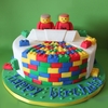 Cake for a Lego themed party I made for my twin nephew?s 6th birthday party. Cake is covered in fondant with fondant accents. All the legos were hand cut and placed on one by one (took quite a while!) :). The Lego men were also hand molded from fondant, my nephews were very excited to eat themselves and had no interest in saving them! This was also the first time Ive ever done a fondant covered cake board, love how it turned out! I dont know who originally designed the cake as Ive seen it all over from different designers so Im not sure who proper credit would be applied to!