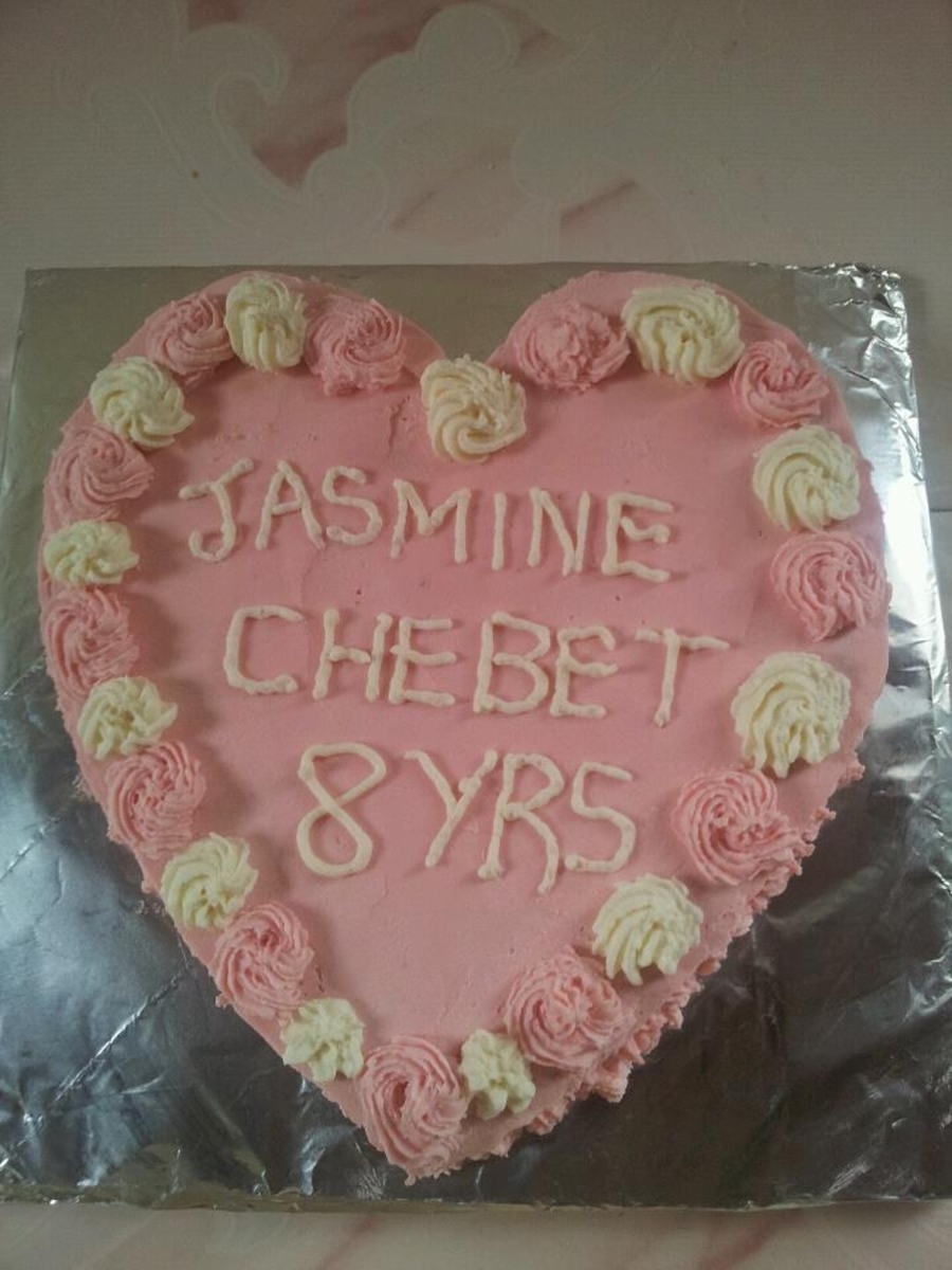 Love shaped butter cream cake for 8yr old angel, Jasmine