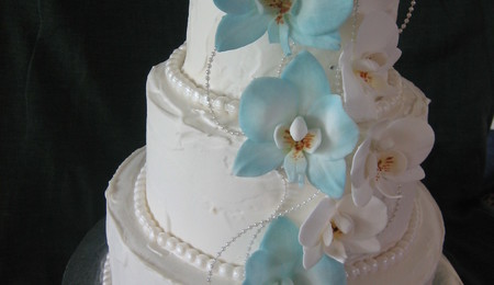 A beach theme cake with natural shells.