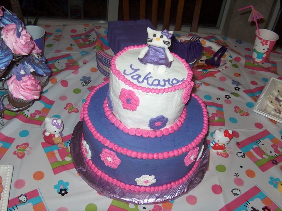 This was a cake I did for my daughters 1st birthday. She just loves hello kitty : ). I attempted to make hello kitty out of fondant. She doesn't look much like hello kitty, but my daughter didn't seem to mind.