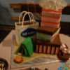 made for my niece who turned thirty, loves shopping camping and children...she works with children as a nanny/daycare provider hence the old nanny bag..old navy is her favorite store all fondant all edible except the candle in the fire pit...TFL