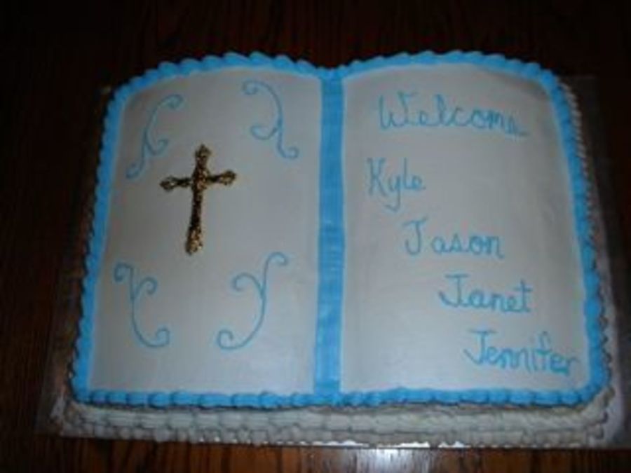 Actually the cross is something I picked up at the decorating store and never used it. Came in real handy since it was my mother who asked me at 10pm Thursday night for the cake for Sat. morning with no stores open on Friday!! I hadn't thought of luster dust. Maybe next time.