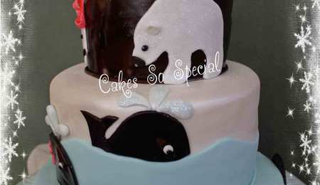 French Vanilla and chocolate cakes with piping, roses and calla lilies