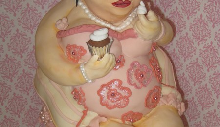 The body is cake, serves 40-45. It is a thin board attached to a frame with the belly made from Rkt. The frame (legs/tail/neck) is made with 1/2" pvc covered in modeling chocolate then covered in fondant. The base board was cut in a really odd shape which made it a little tough to transfer, but no problem if it was cold, right out of the fridge.