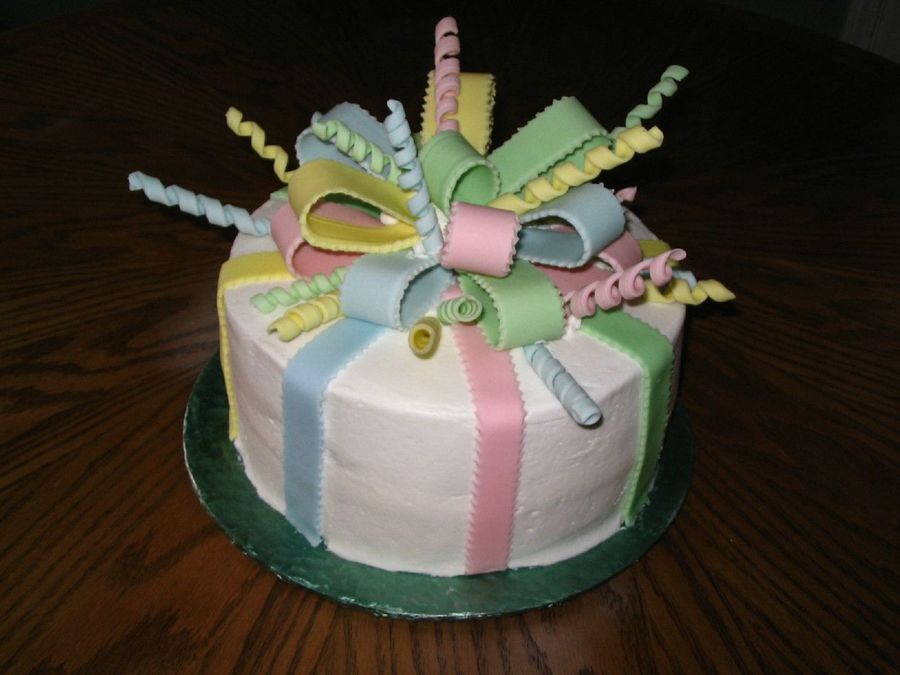 This is my take on the Wilton Curly Bow cake that's in the Celebrate with Fondant book. After looking through several of my books, my friend's 3 year old daughter had to have this one for her birthday. I did not cover the cake in fondant, but buttercream.