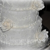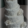 6-8-10-12 buttercream cake with fondant lace overlays, sugar pearls and sugar flowers; all super-pearled! A very romantic style!