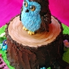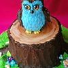 Owl is made out of two foam balls different sizes covered with sugarpaste. For the feathers i used rose leaves plunger cutter (medium and small) :)