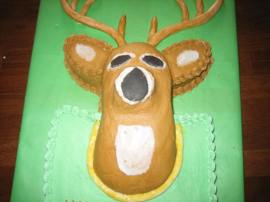 got the idea and instutions from ellantehalima from this site thank you thank you thank you. cake was chocolate and vanilla with buttercrean frosting. antlers were fondant as well as the eyes and nose. i thought it would turn out a little bit better but was not too disappointed. my brother loved it didint even want to cut into it and that made me fell good