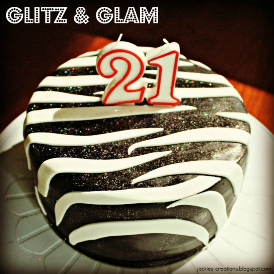 Last week my family and the whole she-bang celebrated my cousin Kathleen's 21st birthday at a Mongolian restaurant called 'Genghis Khan'. This zebra patterned disco dusted cake was what I quickly whipped up for her to celebrate the wonderful occasion!! TFL and comments welcome xo