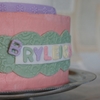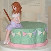 This cake was made to matching some of the nursery decor and go with the fishing themed baby shower. It?s hard to see in the photos, but there is fishing line running from the pole to the letter ?B?. Had lots of difficulties with this one. From my butter cream to my pregnant mama. Her legs and arms fell off I don?t know how many times. Clearly from the pictures I need LOTS more practice with modeling. (any suggestions are welcome!) She was a learning experience.