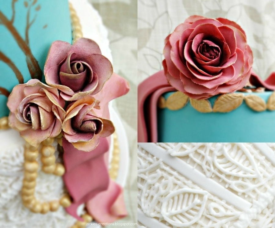 This wedding cake was fortunate enough to be in latest Cake Central Magazine (Volume 3 Issue 5), as part of the "Pink & Teal - Inspiration Wedding" section. More details on my blog. TFL and comments welcome xo