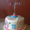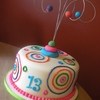 funky, neon 13th birthday cake. I have previously made a 2 tier version of this in black and aqua, but I think this one turned out great! Kind of has a Dr. Seuss feel. :)