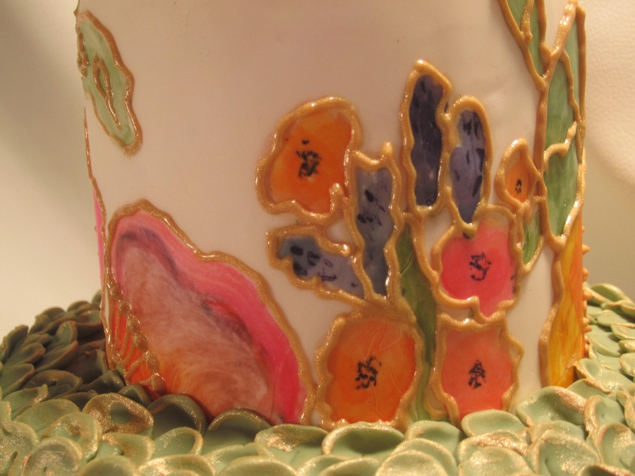 handpainted. inspired from a picture of dinnerware in a wedding magazine and a cake stand i bought on clearance.