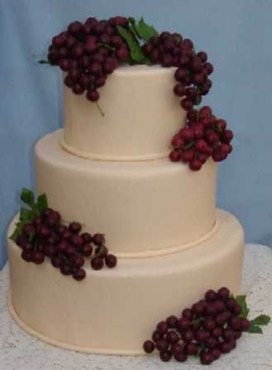 This ones a "dummy" cake. I've been making so many that everyone is sick of cake so now I have no choice but to practice on fakes. The grapes are made out of gumpaste.