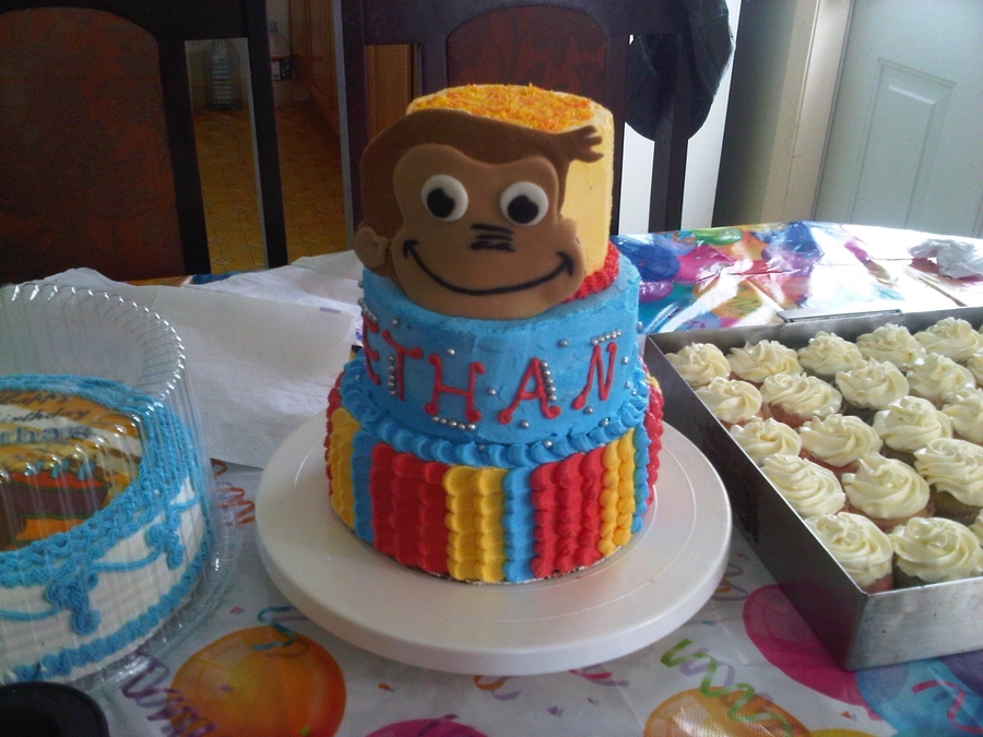 I made this for my son's 2nd birthday. The cake was iced in buttercream and curious george was done in fondant.