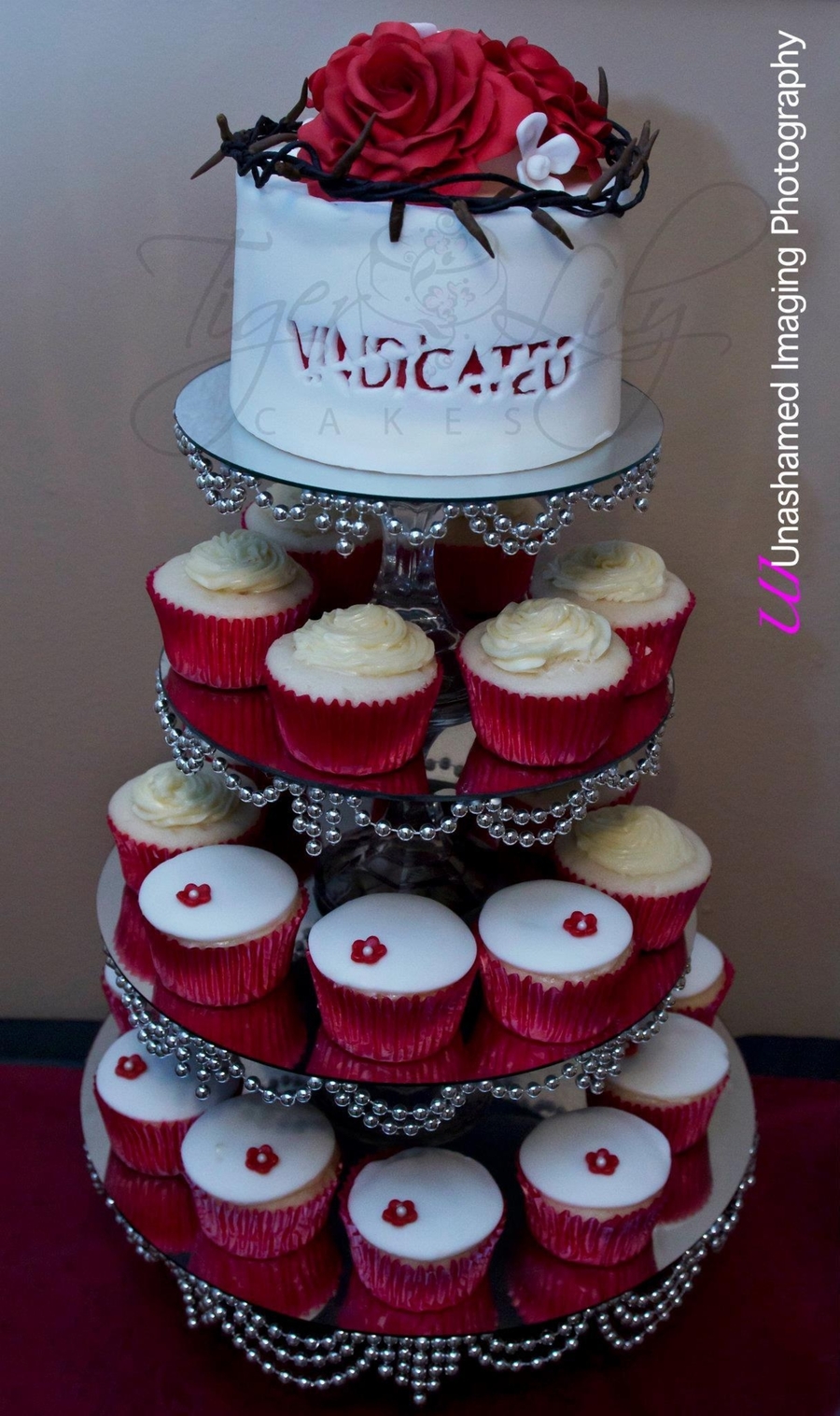 I made this for a friend's Album release. I cut out her album logo on the second layer of fondant.