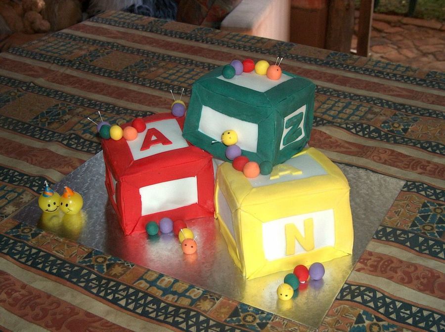 Was done for my cousin's little boy who turned 2. It is a vanilla cake covered with fondant. I cut the cake into perfect squares but when I put the icing on started to squash the cake out of form. Especially when I placed the green block on top. I tried to fix as best I could and also took the picture from the right angle. I fixed it with the little worms as I did not have a lot of time - I had to so 4 cakes in 4 day, which is alot for me!