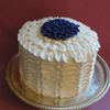 2 8 inch WASC cakes, buttercream ruffles for a dear friend's birthday. The fondant dahlia might not be a good addition, but my daughter liked the way it looked so it stays. The last photo shows how I 'scored' the icing to try and get the ruffles lined up. Of course right after I took the pic, my row was crooked (sheesh!). Cake was sprayed with Pearl luster for the shine.