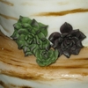 One of my best friend's wedding cake! Got the idea off of Pinterst. She's allergic to almost all flowers so used she used Hens&chicks (Sempervivum) succulents in bouquets, center pieces and decorations. Each Succulent was hand made out of a mixture of fondant and gumpaste. I used several different tutorials and then pretty much winged it. The bride supplied the purchased topper.