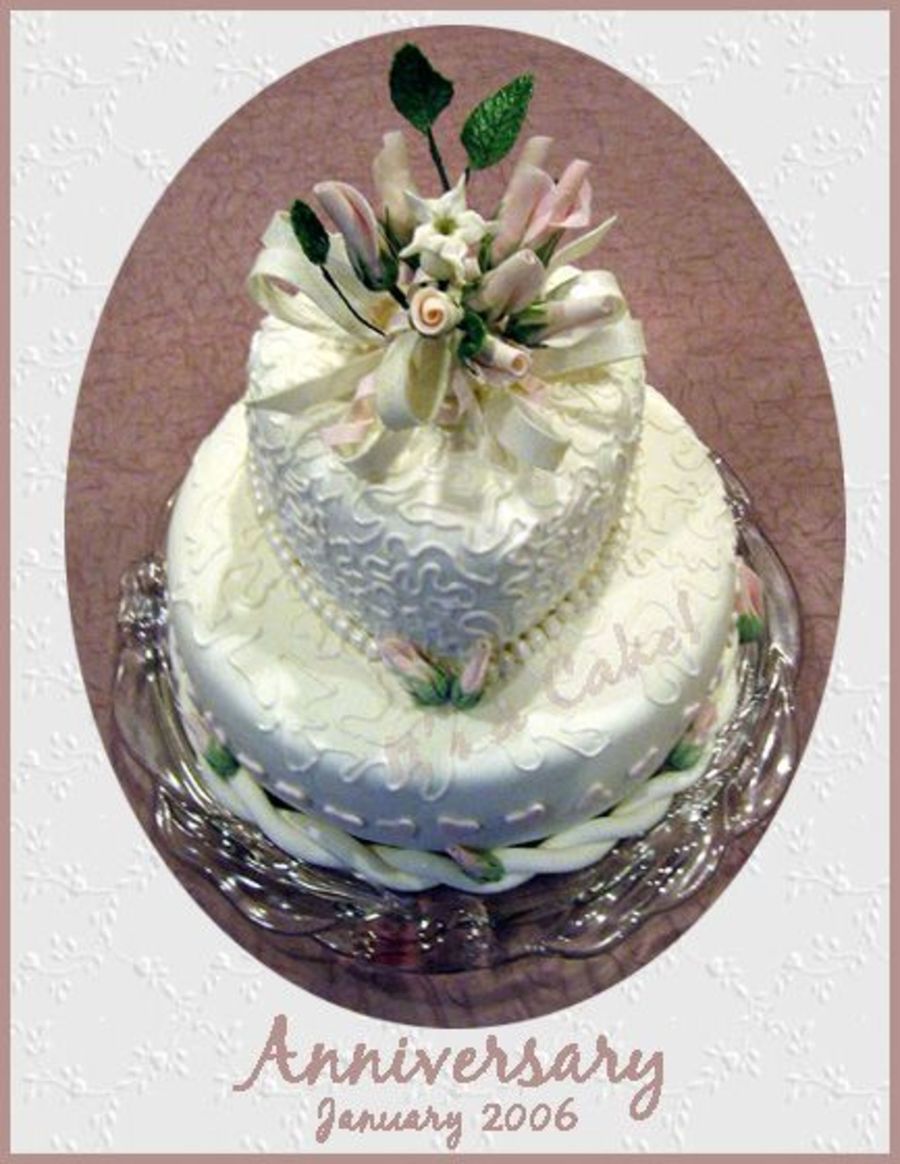 Wow, that is a beautiful cake. 2nd anniversary? I thought it HAD to be for a wedding. What a wonderful gift from a MOM to a son and DIL.