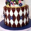 Tim Burton's Alice in Wonderland style birthday cake in jewel tones and name plaque.