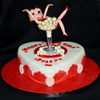 Everything but the glass is handmade and edible, Cake is chocolate cake covered in fondant.