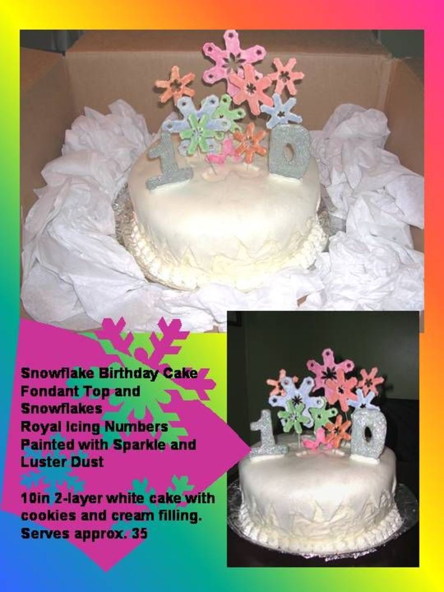 The 10-year old girl requested a Snowflake Cake. Couldn't get it right with Royal Icing so I improvised and used cookie cutters and 1/2 gumpaste 1/2 fondant!