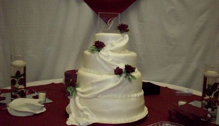 theh roses are perfect and I love your script there too that is beautiful !!! Once again, elliott your graphics are wonderful. you are goin to have to tell us how you do this or what programs you use on the puter for it. Sure does add to the presentation of your cakes