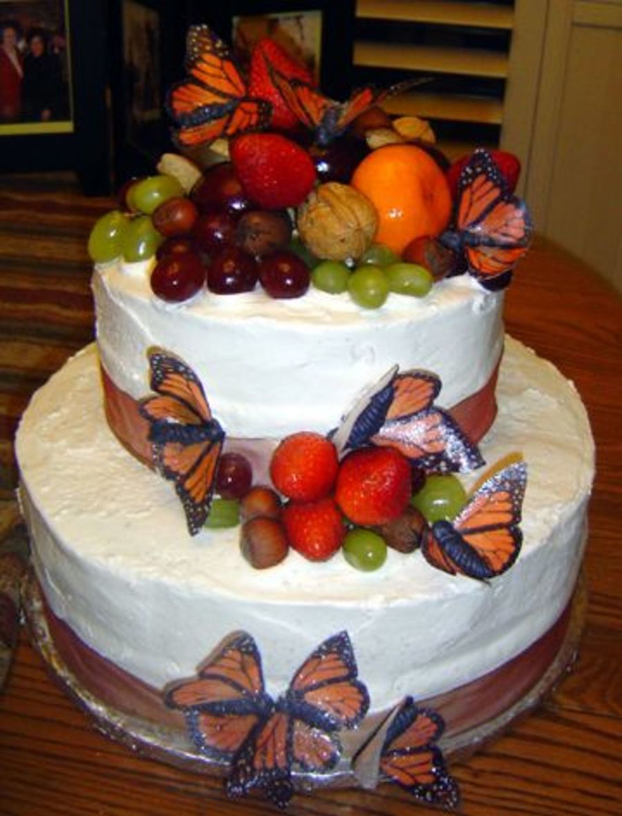 great job on those butterflies!! is that real fruit? beautiful cake
