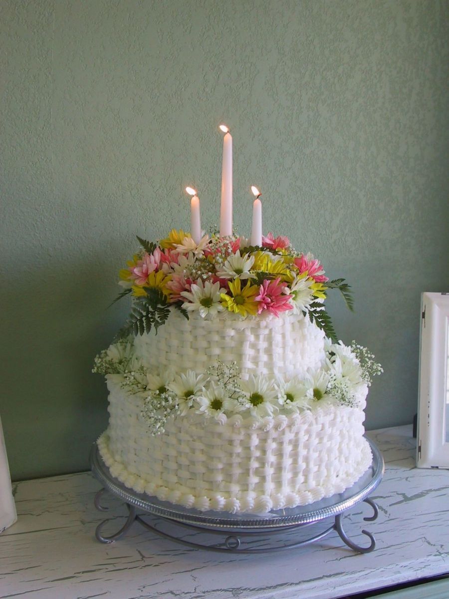 Beautiful cake!! You did an excellent job with your basketweave on the sides. The flowers are just beautiful.. I love this cake!!