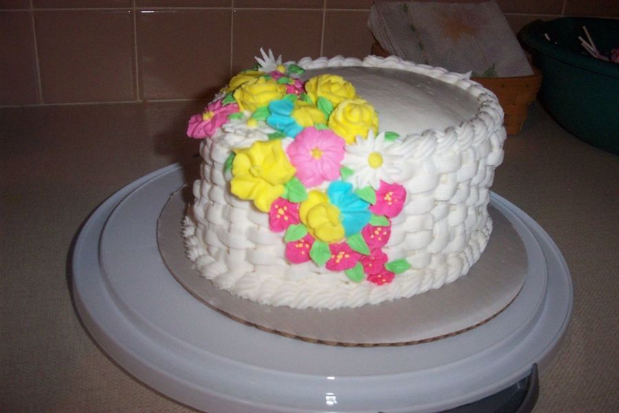 Nice job! I make this cake in class next week! Yours turned out great, I love your flower colors! Your daisies came out perfect, did you use tip 104 for them?