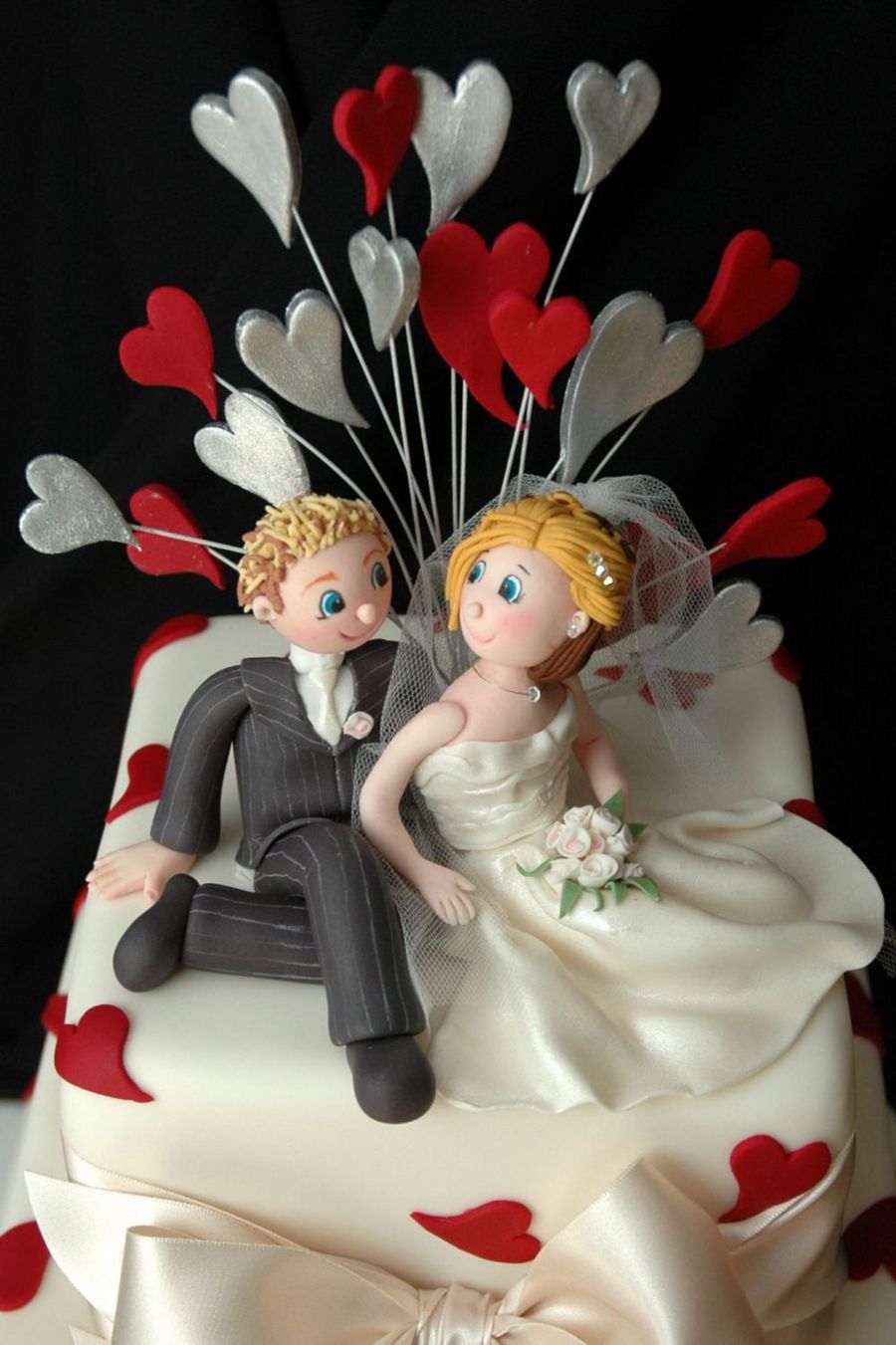You did a wonderful job! Love the hearts. I have just bought a cutter like that and can't wait to try your design if you don't mind. The bride and groom are wonderful.