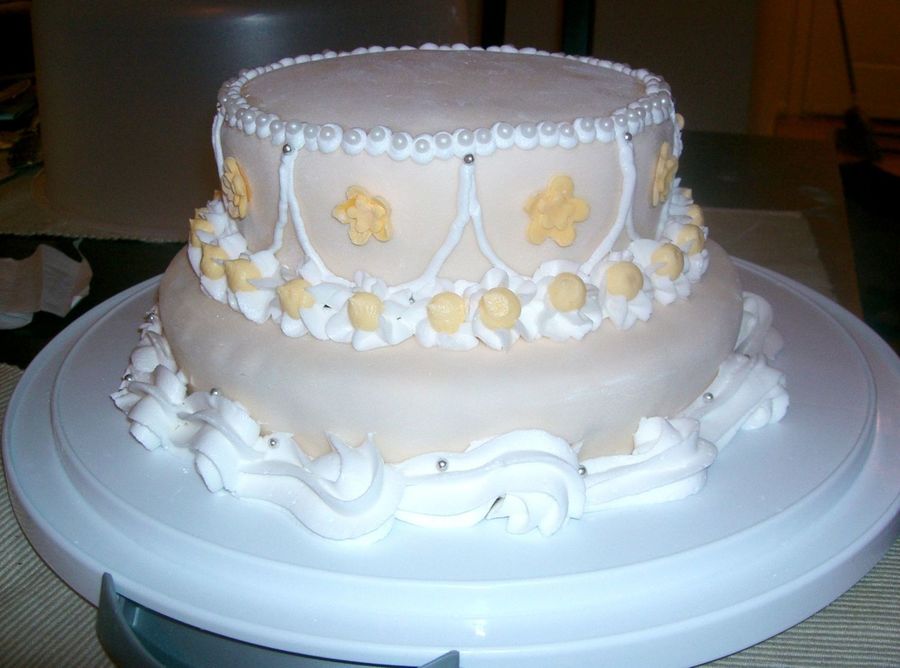 Nice colors...looks like it could be for a bridal shower. As far as the sides....are your cakes filled? What sort of pans do you use? Some of my pans have slanted sides as opposed to straight up and down so I usually trim the sides with a large bread knife staight down. If they are filled, did you put in a dam first?