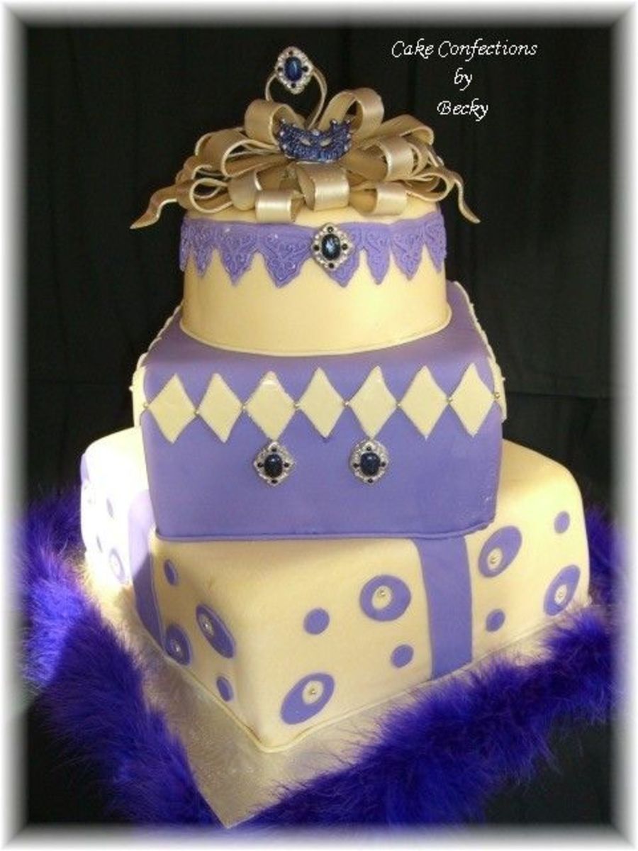 sarahnichole975 on 17 Jul 2006 , 10:44pm how gorgeous is that!!! I'm from New Orleans and I'm thinking what a great mardi gras cake!!! just add in some green!!!