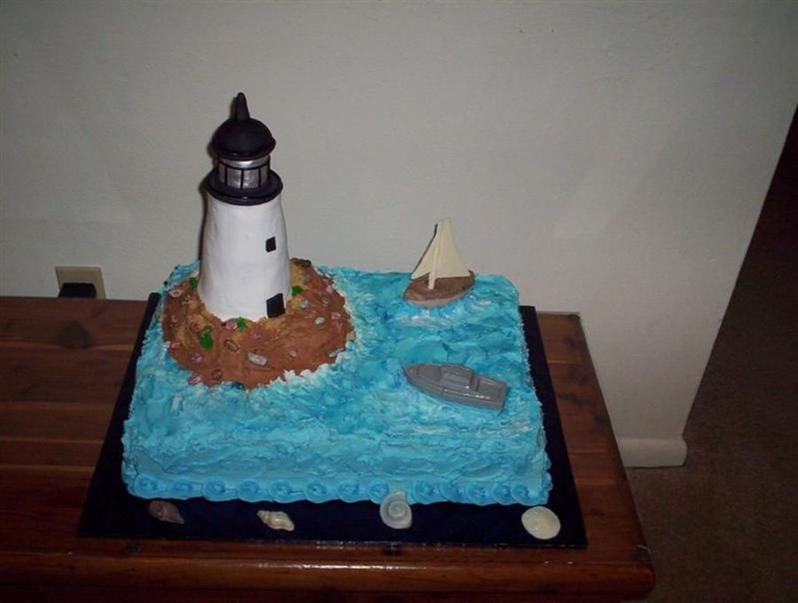 My sister loves lighthouses and this is an awesome cake, would you please share how you did the lighthouse and water look:)