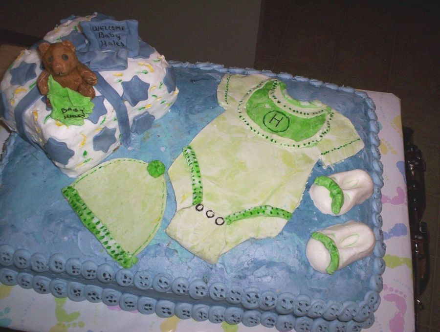 Everything is edible right down to the bear all decorations made with mmf. buttercream frosting for the rest with buttercream buttons .