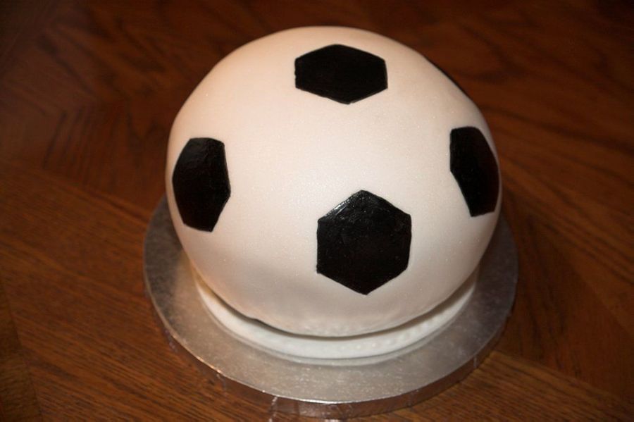I have never seen a more perfect looking soccer ball cake! If you had any troubles with this cake it does not show up in this picture at all. Super job! :)