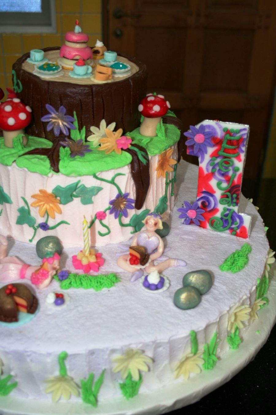 Done for a little girl who was going to have her party in an amusement park that looked like a pixie forest. BC with fondant accents