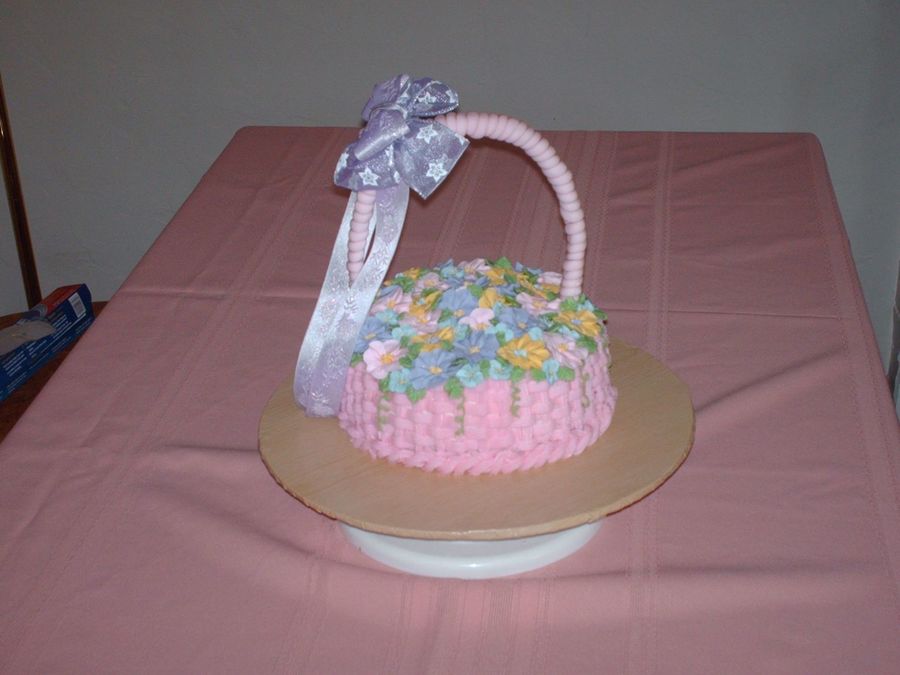 This was a cake made for a 5 year old's birthday party. She was so girly, I thought that a basket cake would be just what she would like. All edible except for the ribbon on the handle. One of my favorites, so far!