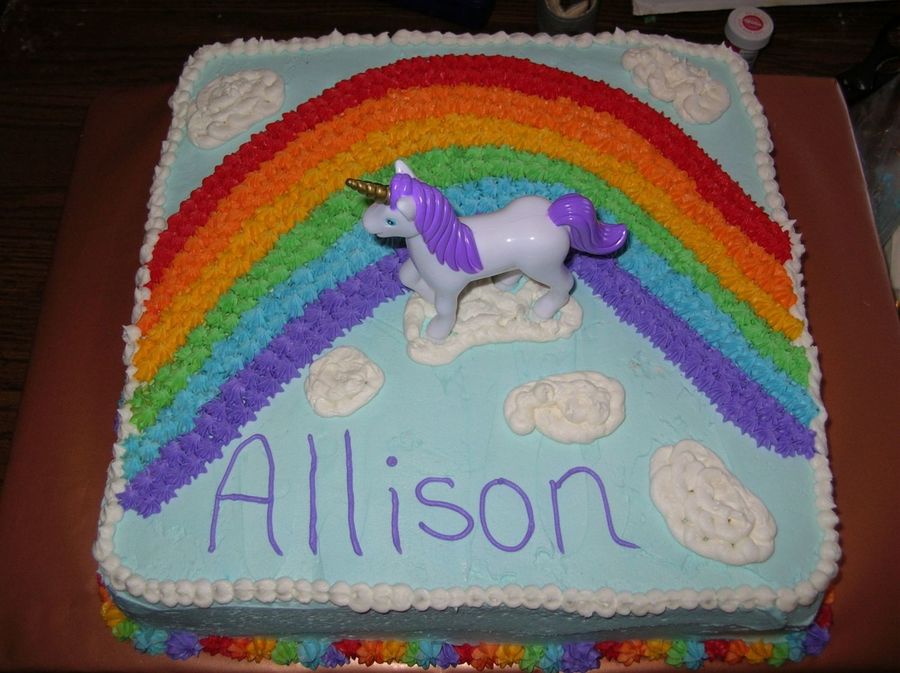 I made this for my daughter's 5th birthday. The theme was unicorns and rainbows. I tried making a unicorn FBCT, but it just didn't work out and I didn't have time to make another one. Luckily she had a unicorn so I changed what my plans were and this is what I ended up with. She loved it!