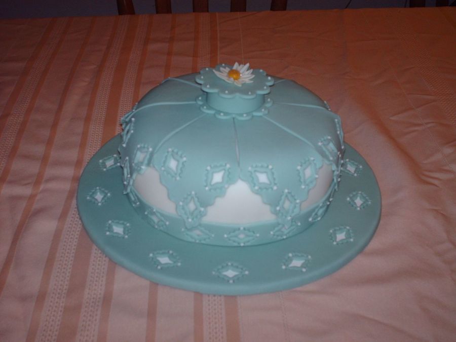 I made this cake in the new Wilton Fondant and gumpaste class. All Fondant and fondant/gumpaste work. The top is a keepsake box wich can be kept long after the cake is gone! This was a vanila cake filled with chocolate ganache. I'm very pleased. Not bad for a beginner, huh?