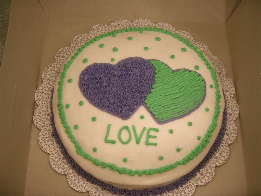 The second session of Course 1 was on Valentine's Day, so our instructor let us do cakes with hearts. I only had purple and green frosting, and I rushed through the top border, but I was pleased for my first cake ever.