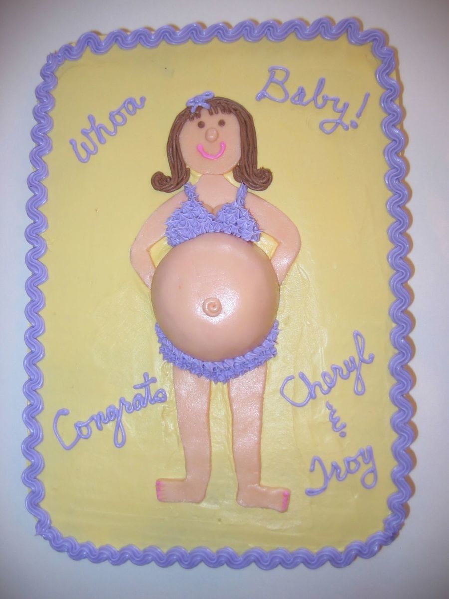 GREAT cake! Looks like me when I was pregnant. Shiny belly and all!