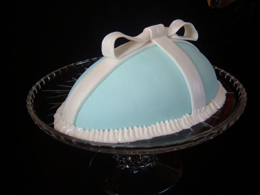 Fondant covered Egg with gumpaste bow. Luster dust painted to give shine.