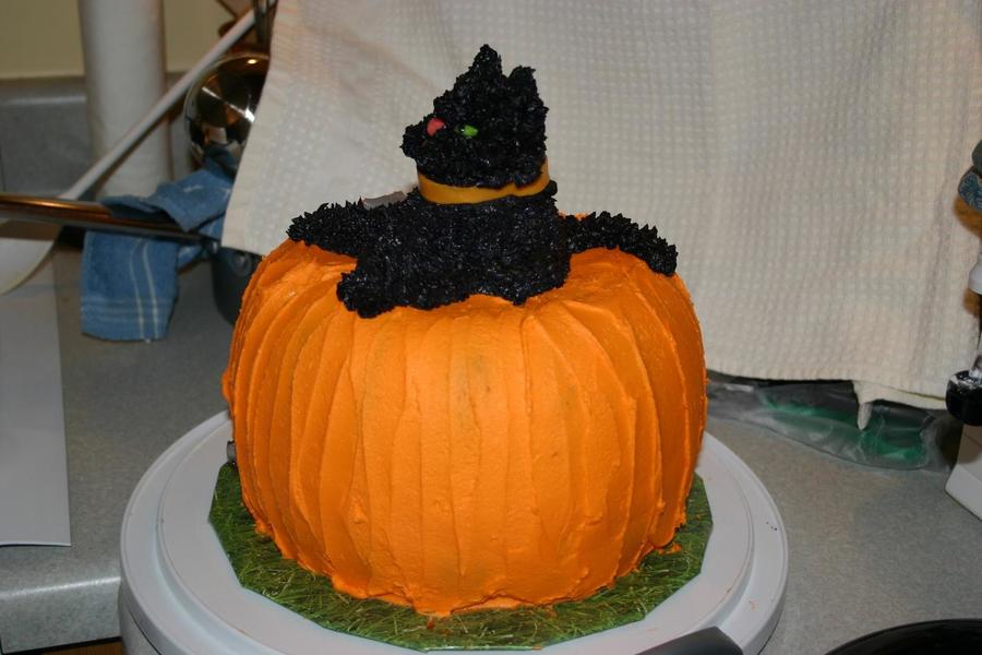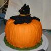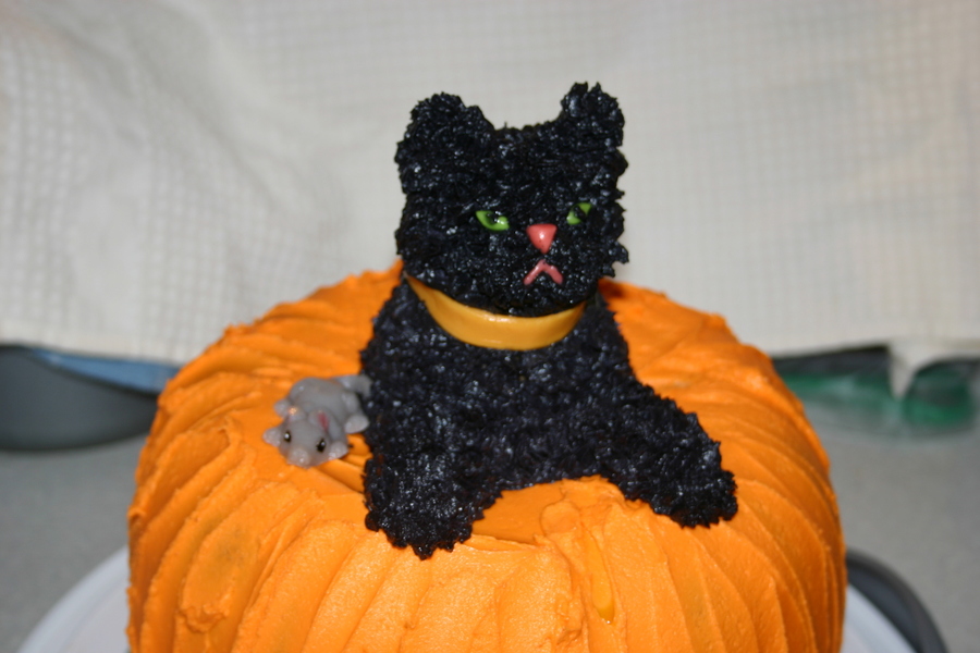My first attempt at a pumpkin cake. Got the idea from someone here at CC (sorry I can't remember who). Cat in middle is mini-wondermold with icing for head and paws.