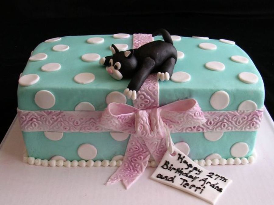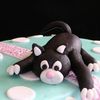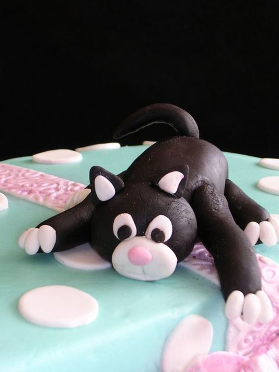 used an 8 in sq. and cut some off the back and put on the side to form the shape. fondant accents and fondant cat on top.