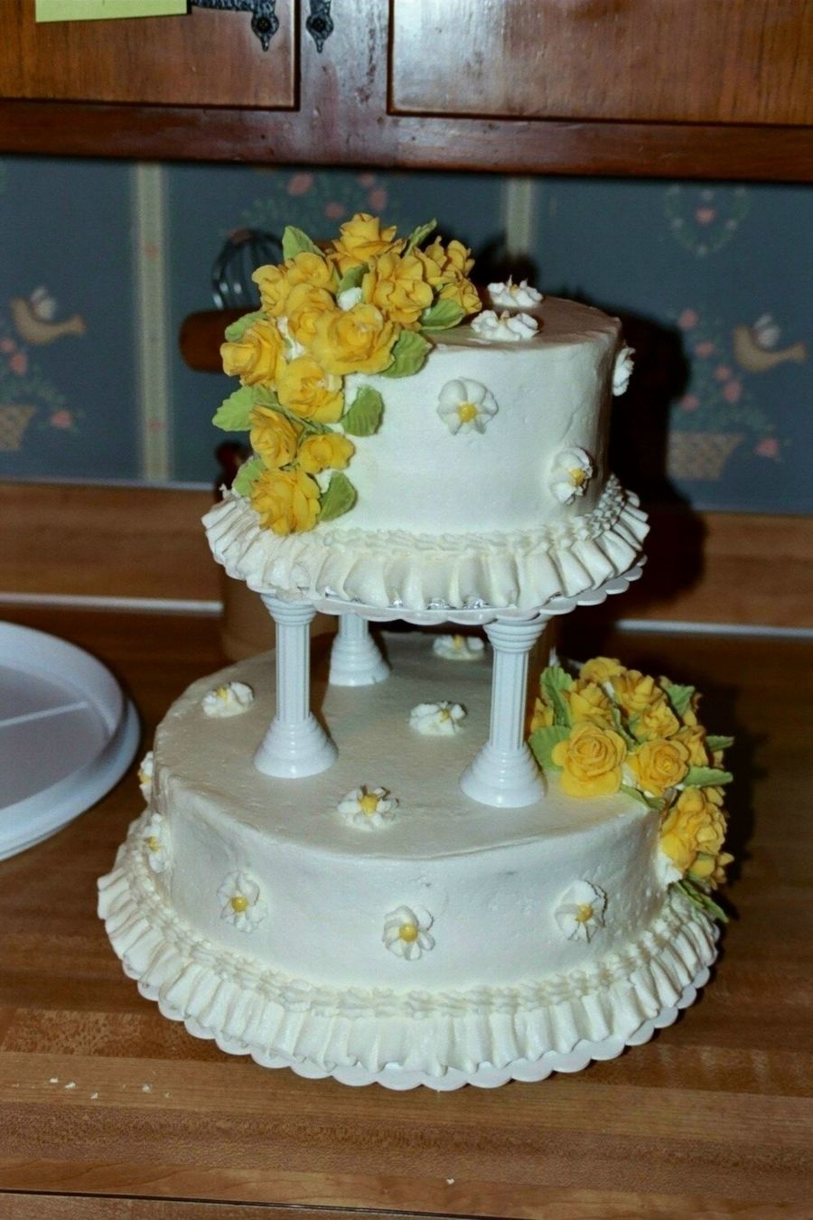 This is my wilton 3 final cake, the top layer is strawberry and the bottom is one layer carmel and one layer chocolate w/ carmel frosting in between the layers - that is my new favorite combination