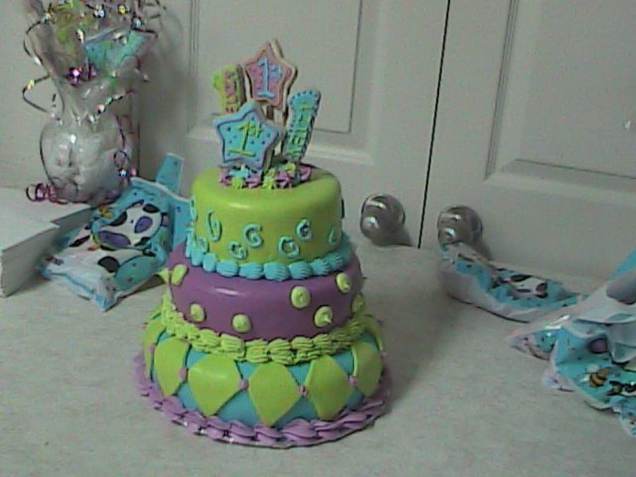 Very cute cake. Your color choices are great and you did a wonderful job with the fondant.